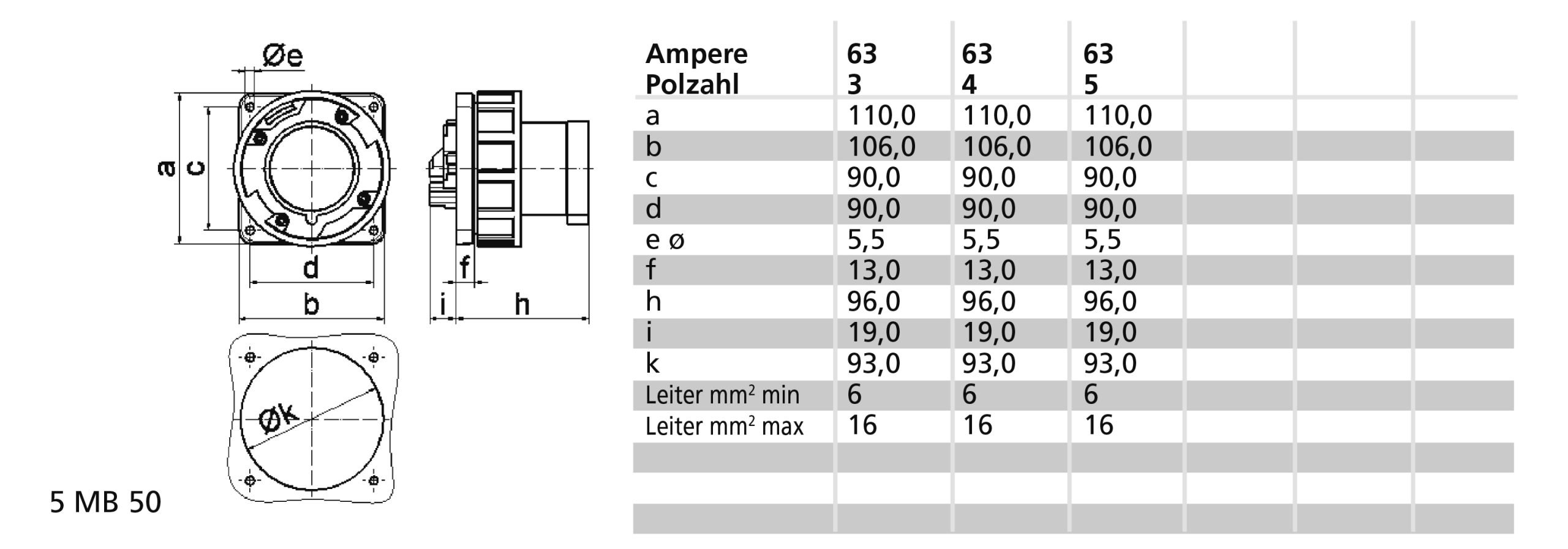 TCD 6h 63A 5P 400V IP67 110×106 Inb Ni