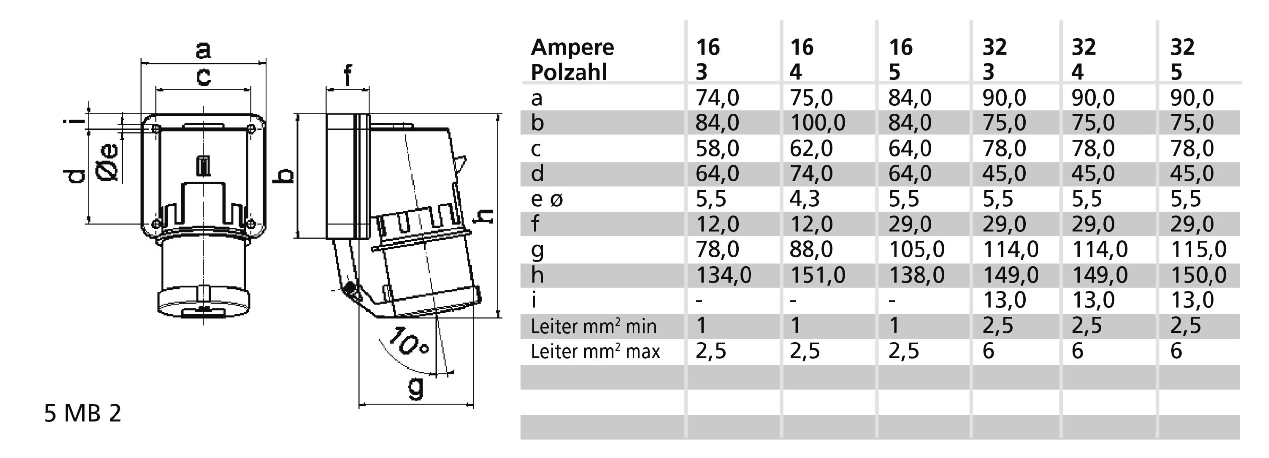 TCD 9h 16A 3P 400V IP44 84×74 Aanb Klapdek
