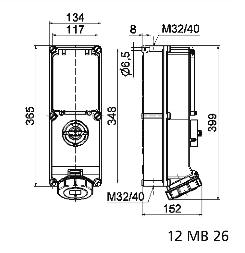 Wandcontactdoos 3h 32A 4P 440V IP67 365x134 QUICK-CONNECT Afschakelbaar / Vergrendelbaar / Gezekerd Nikkel
